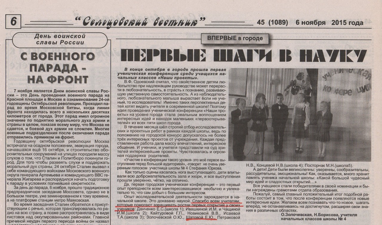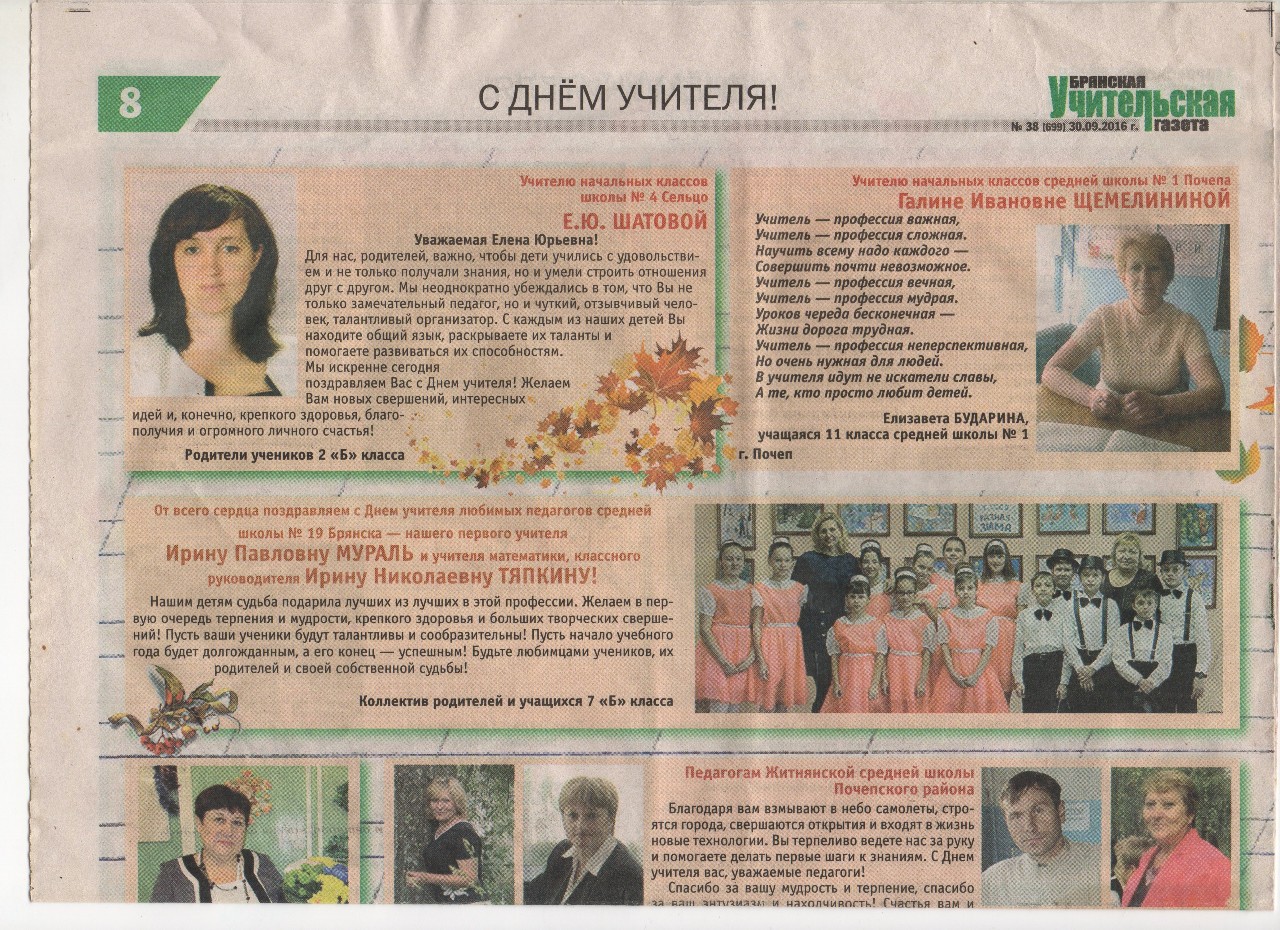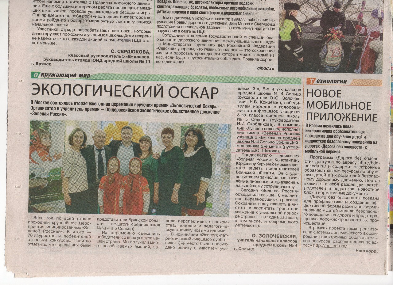 начальных классов МБОУ СОШ №4 г. Сельцо